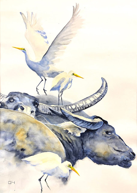 Just in time to finish a cow painting before the first day of the Year of the Ox ends! Happy new year everyone and I wish you all a healthy and productive year ahead! Japanese ink and Gouache on paper. #japaneseink #gouache #japaneseinkpainting #wildlifeart