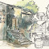 The painting was done in an art party. Though the scene is not depicting a particular location in Hong Kong, the house is painted based on some of the still existing old village houses that can still be found in Hong Kong, mostly in the more remote parts of the New Territories.